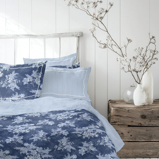 Soon AvailableDuvet cover + pillowcase cotton satin - Noctalia Blue
