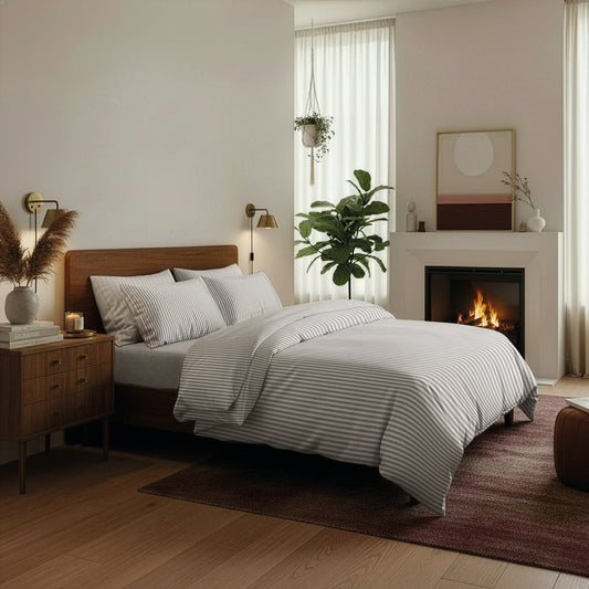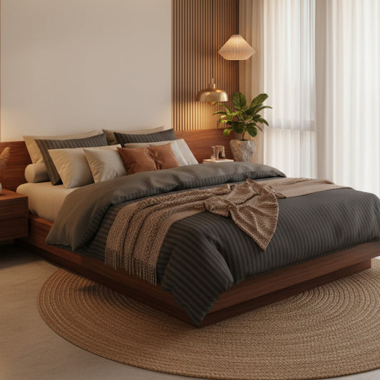 Soon AvailableSheet set cotton satin dobby stripe woven - Dark grey