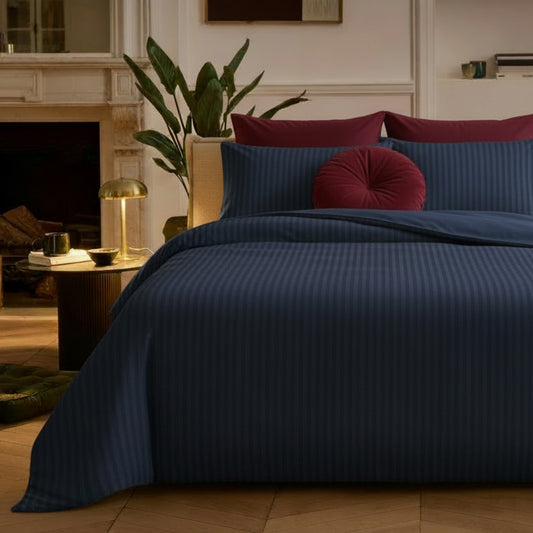 Soon AvailableSheet set cotton satin dobby stripe woven - Dark blue