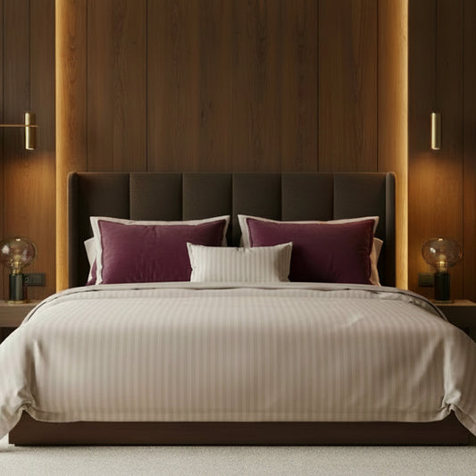 Soon AvailableSheet set cotton satin dobby stripe woven - Taupe