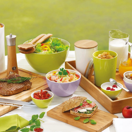 Set of 7 glass jars with bamboo lid - transparent and green - 0.32 l -> 1.5l