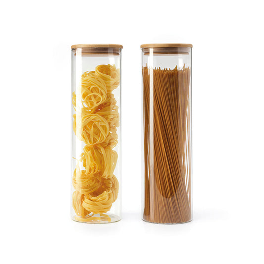 Soon AvailableSet of 2 round glass canisters with bamboo lid