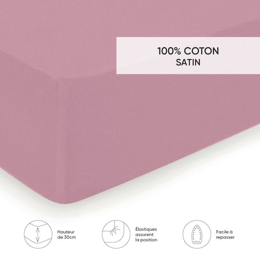 Fitted sheet cotton satin - Uni Pink