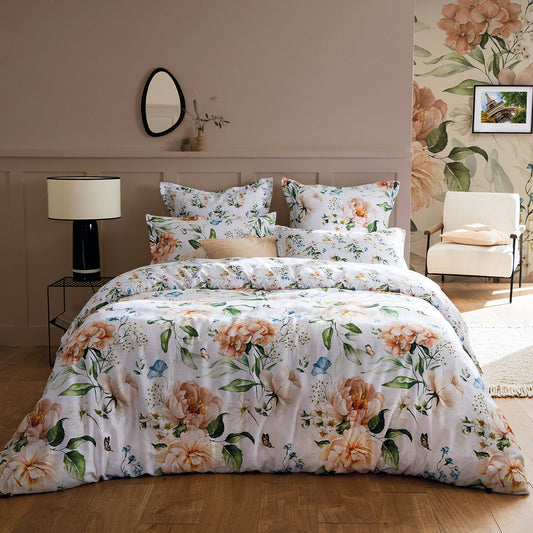 Duvet cover + pillowcase(s) cotton satin - Jardin de Fleurs White