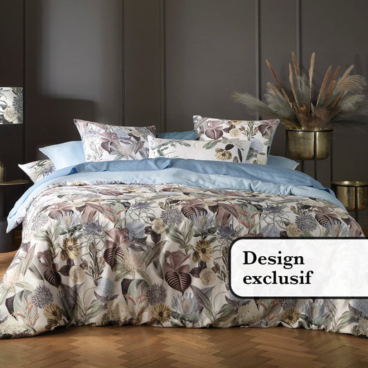 Duvet cover + pillowcase(s) cotton satin - Garden Light Blue