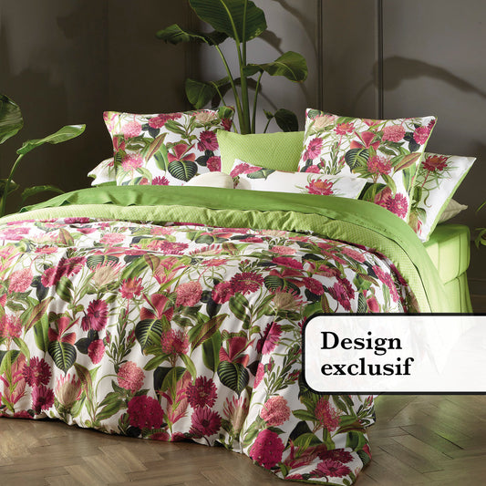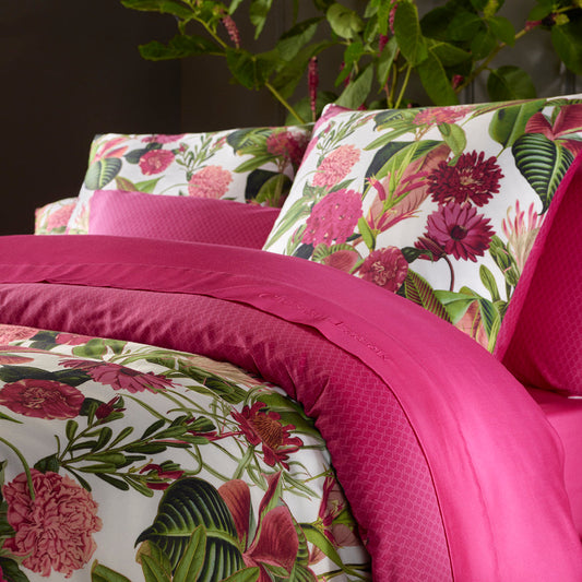 Duvet cover + pillowcase(s) cotton satin - Garden Fuchsia