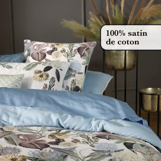 Set of 2 pillowcases cotton satin Garden Light blue - 50 x 60 cm