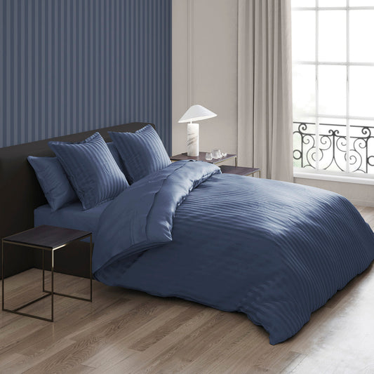 Duvet cover + pillowcase(s) cotton satin dobby stripe woven - Blue
