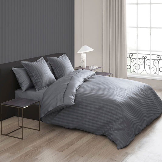 Duvet cover + pillowcase(s) cotton satin dobby stripe woven - Dark grey