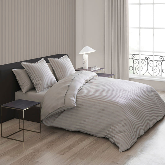 Duvet cover + pillowcase(s) cotton satin dobby stripe woven - Taupe