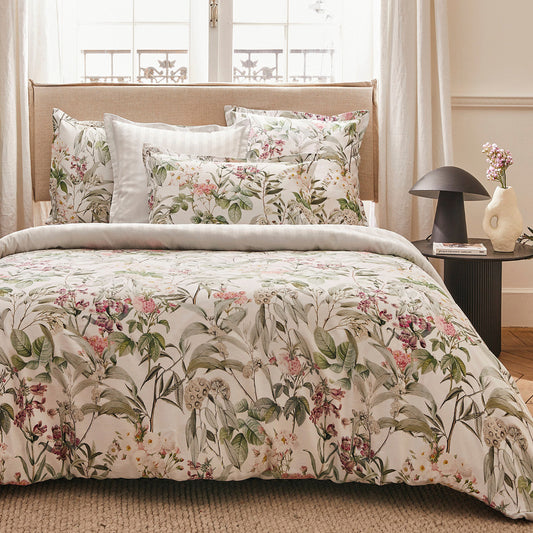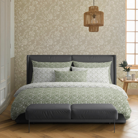 Duvet cover + pillowcase(s) cotton satin - Parterre de Roses green