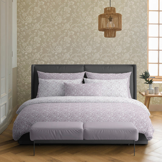 Duvet cover + pillowcase(s) cotton satin - Parterre de Roses lavender