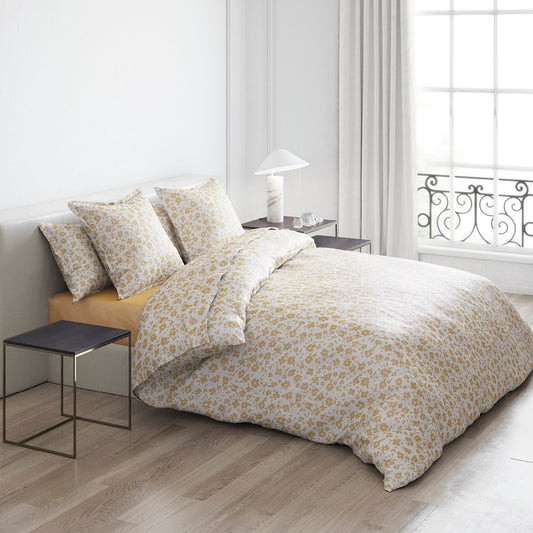 Duvet cover + pillowcase(s) cotton satin - Eglantine White / Yellow
