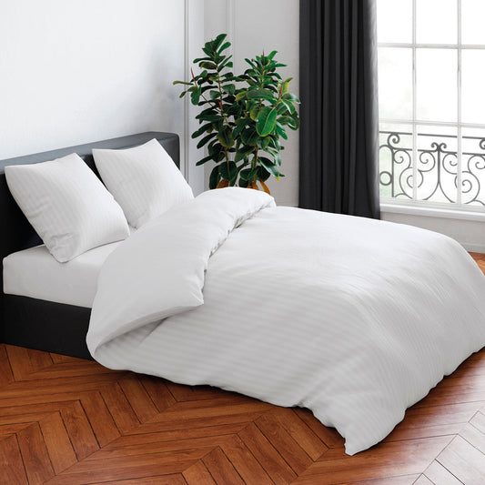 Duvet cover + pillowcase cotton satin dobby stripe woven White