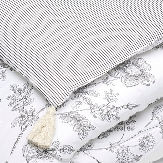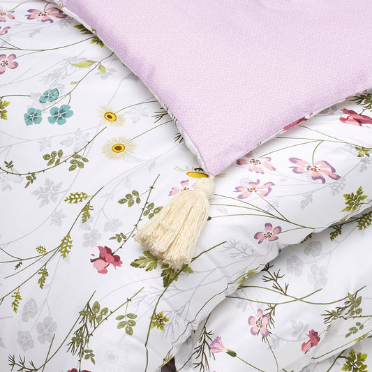 Quilt with tassels Fleurs sauvages White / Pink - 140 x 200 cm