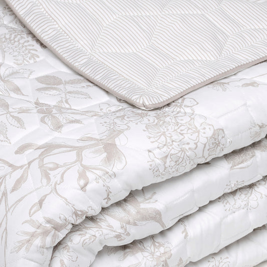 Soon AvailableQuilt with tassels Colibri floral Taupe - 140 x 200 cm