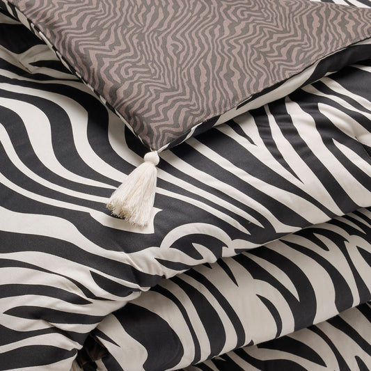 Soon AvailableQuilt with tassels Rêves zébrés Black - 140 x 200 cm