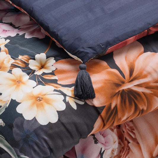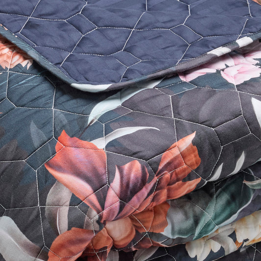 Bedspread XL Murmure floral Dark blue / Pink - 220 x 250 cm