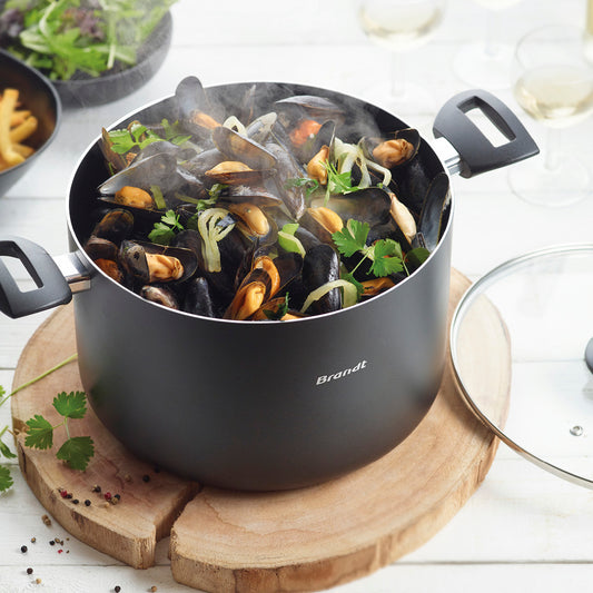 Batterie de cuisine 20 pièces - aluminium noir - Ø 16/18/20/24/28 cm + marmite et protège-poêles