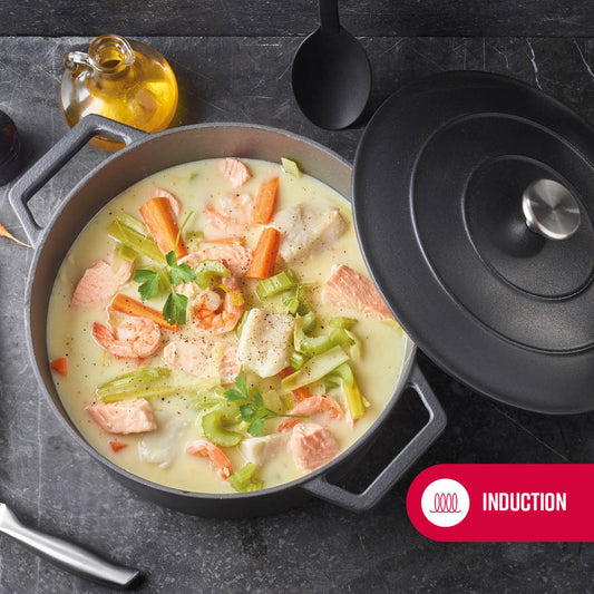 Soon AvailableCast iron round casserole 28 cm - Purple