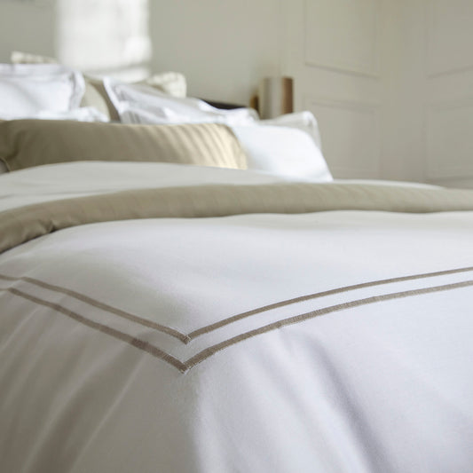 Duvet cover + pillowcase(s) cotton satin - La Rochelle Taupe / White