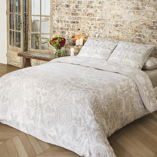 Duvet cover + pillowcase(s) cotton satin - Love Stories Beige