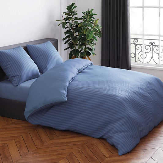Duvet cover + pillowcase(s) cotton satin dobby stripe woven Blue