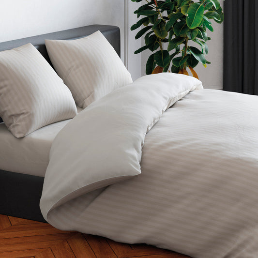 Duvet cover + pillowcase(s) cotton satin dobby stripe woven -Taupe