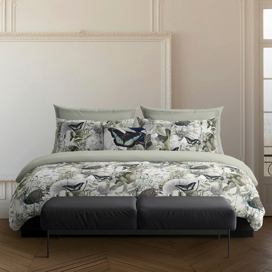 Duvet cover + pillowcase(s) cotton satin - Jardin orné Linden green