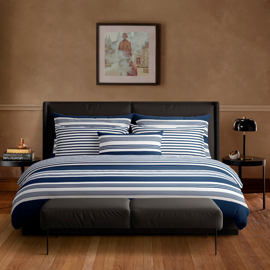 Duvet cover + pillowcase(s) cotton satin - Bastia Dark blue / White