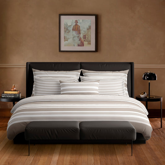 Soon AvailableDuvet cover + pillowcase(s) cotton satin - Charles Taupe