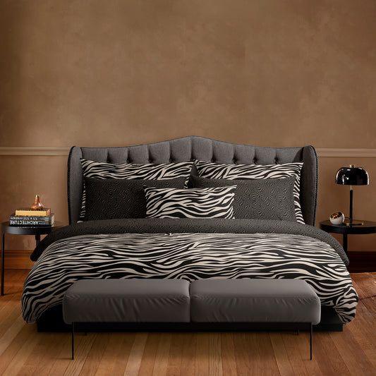 Duvet cover + pillowcase(s) cotton satin - Paradis zébré Black