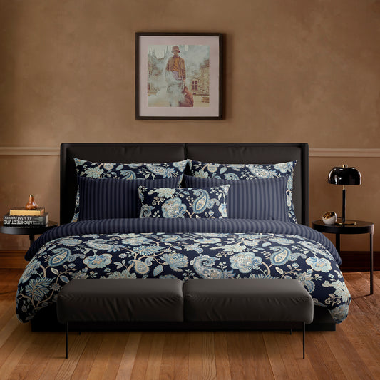 Duvet cover + pillowcase(s) cotton satin - Fleur de minuit Dark blue