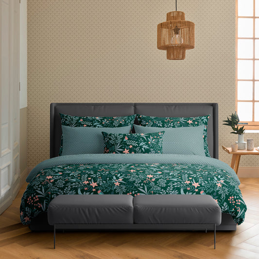 Duvet cover + pillowcase(s) cotton satin - Jardin volant Green