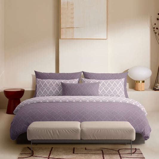 Duvet cover + pillowcase(s) cotton satin - Harmonie végétale Dark purple / Light purple