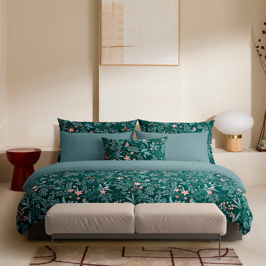 Duvet cover + pillowcase(s) cotton satin - Murmure floral Green