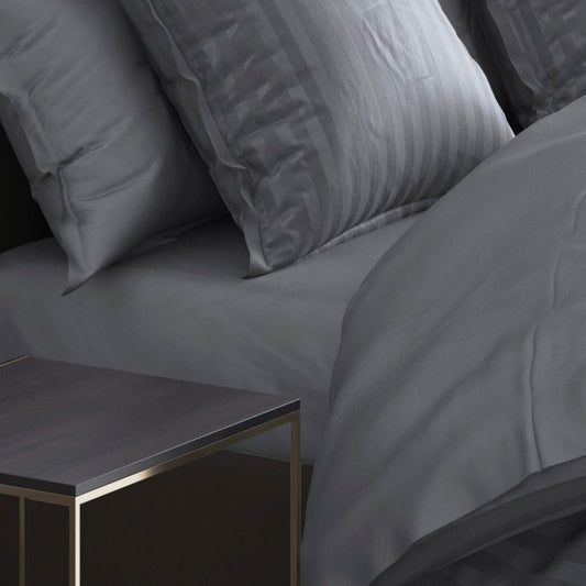 Fitted sheet cotton satin Uni Dark grey