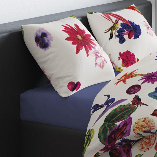 Fitted sheet cotton satin Garden Micro Fuchsia - 80 x 200 x 30 cm