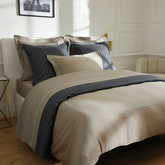 Flat sheet cotton satin - Bastia Taupe / Taupe