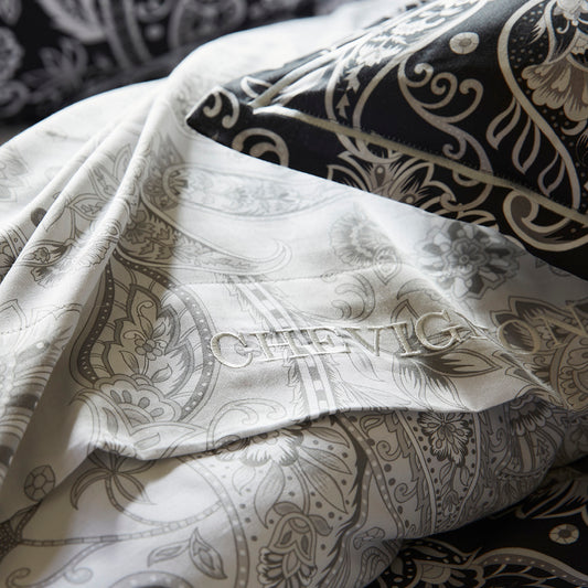 Flat sheet cotton satin - Paisley Grey / Taupe