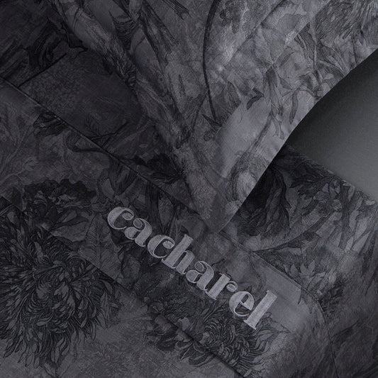 Flat sheet cotton satin - Toile Fleurie Dark grey