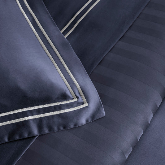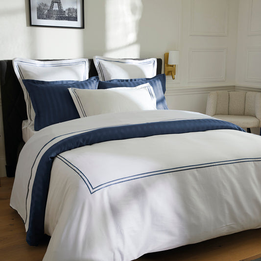 Soon AvailableFlat sheet cotton satin - Nice White / Dark blue