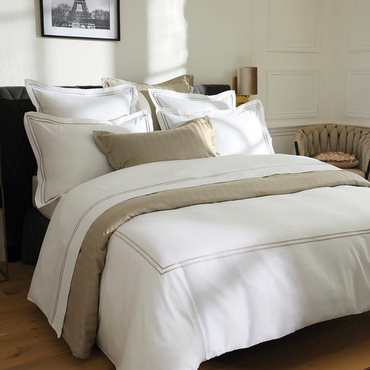 Soon AvailableFlat sheet cotton satin - Nice White / Taupe