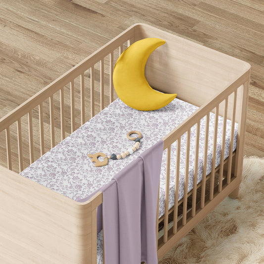 Flat sheet baby cotton satin - Floraison de Roses White / Lavender