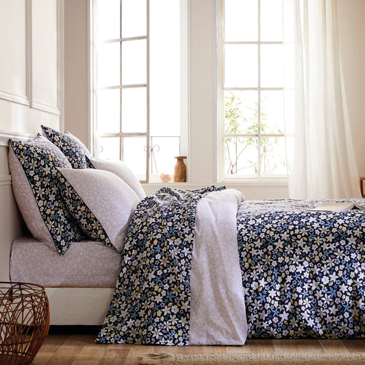 Flat sheet cotton satin - Etoile de Printemps Purple
