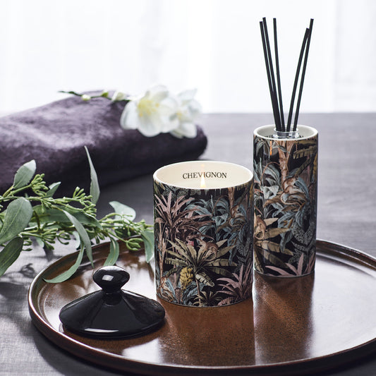Scented candle in porcelain cup Jungle monkey - Black - Jasmin & Ylang - 315 g