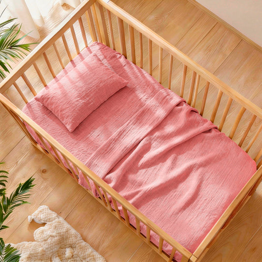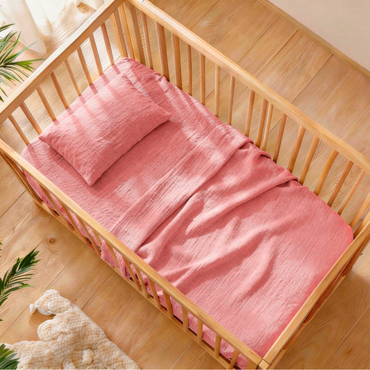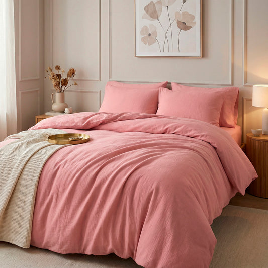 Soon AvailableDuvet cover + pillowcase baby cotton gauze - Uni Pink 06