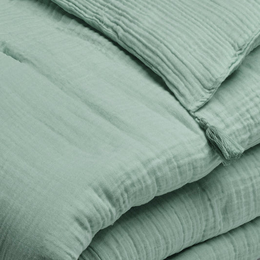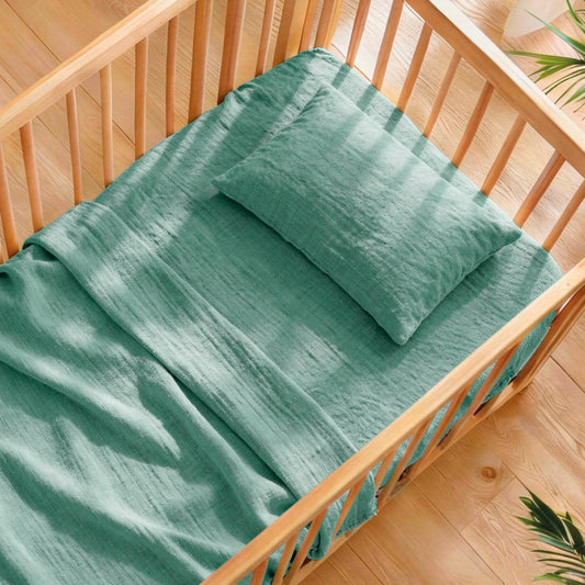 Soon AvailableDuvet cover + pillowcase baby cotton gauze - Uni Green 12