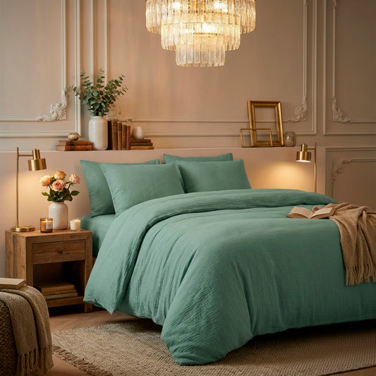 Soon AvailableDuvet cover + pillowcase cotton gauze - Uni Green 12