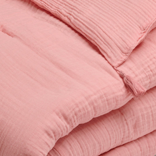 Soon AvailableQuilt with tassels cotton gauze - Uni Pink 06 - 140 x 200 cm